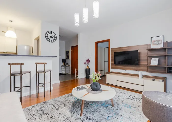 Das 1-Zimmer-Apartament Atelier Residence Warschau liegt in ca. 20 Gehminuten Entfernung vom Schlossplatz und bietet WLAN für Geschäftsreisende und Urlauber. Für die Gäste, die mit dem Auto anreisen, bietet diese 47 m² großen Apartments einen privaten Autoparkplatz vor Ort.